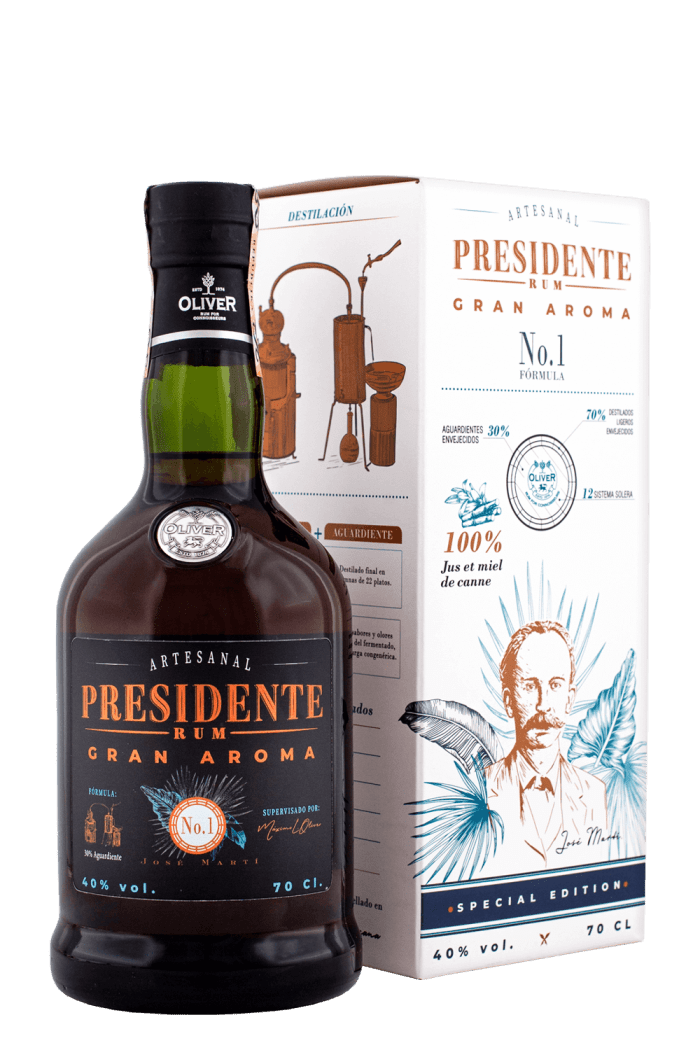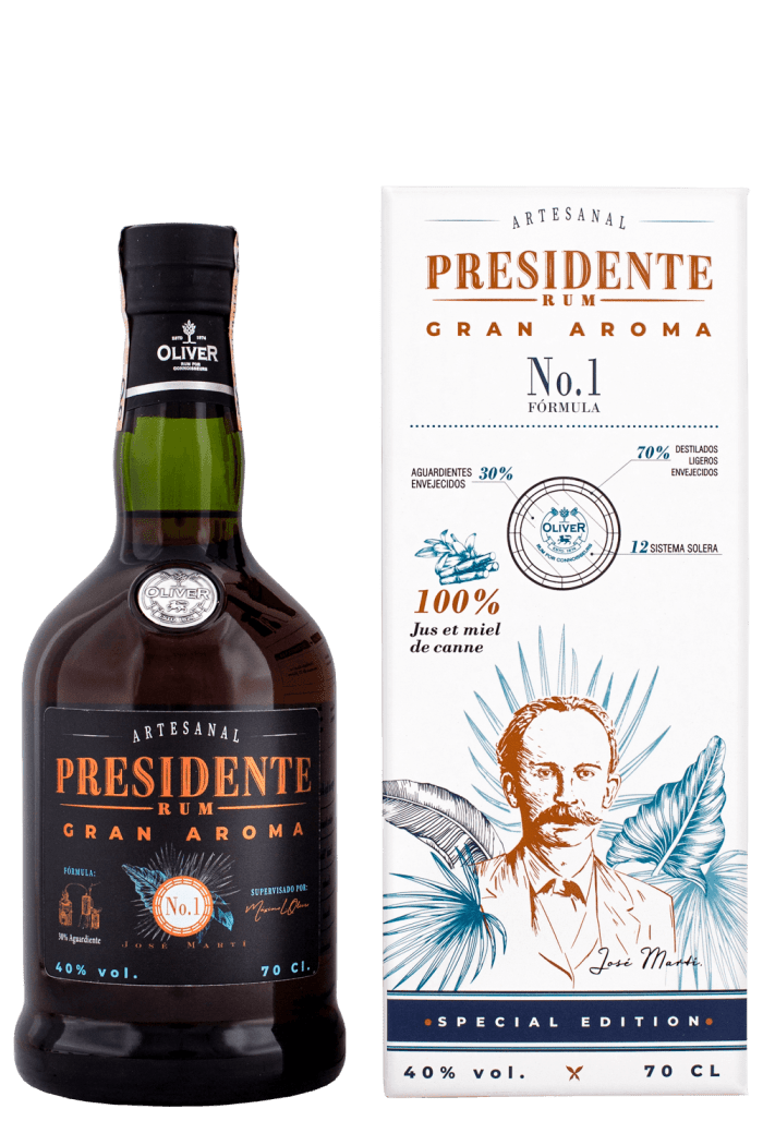 Presidente Gran Aroma zreje výhradne v sudoch z francúzskeho dubu, čo mu umožňuje rozvinúť ovocné a kvetinové tóny, pričom si zachováva charakter a jemnosť rumu kubánskeho typu. Tím kubánskych rumových majstrov z Maison Oliver, vedený Maximom Lopez-Oliverom, vzdáva hold a zveľaďuje tradičné techniky kubánskej destilácie, aby vytvoril jedinečný Presidente Gran Aroma.